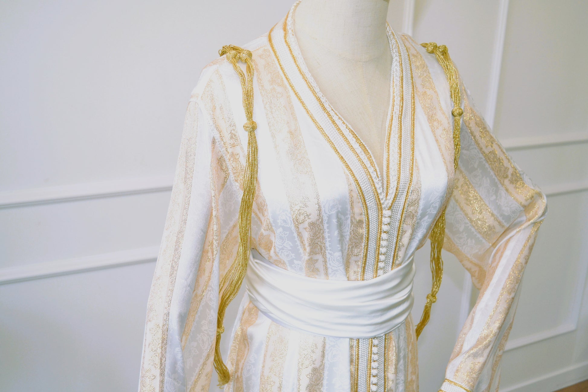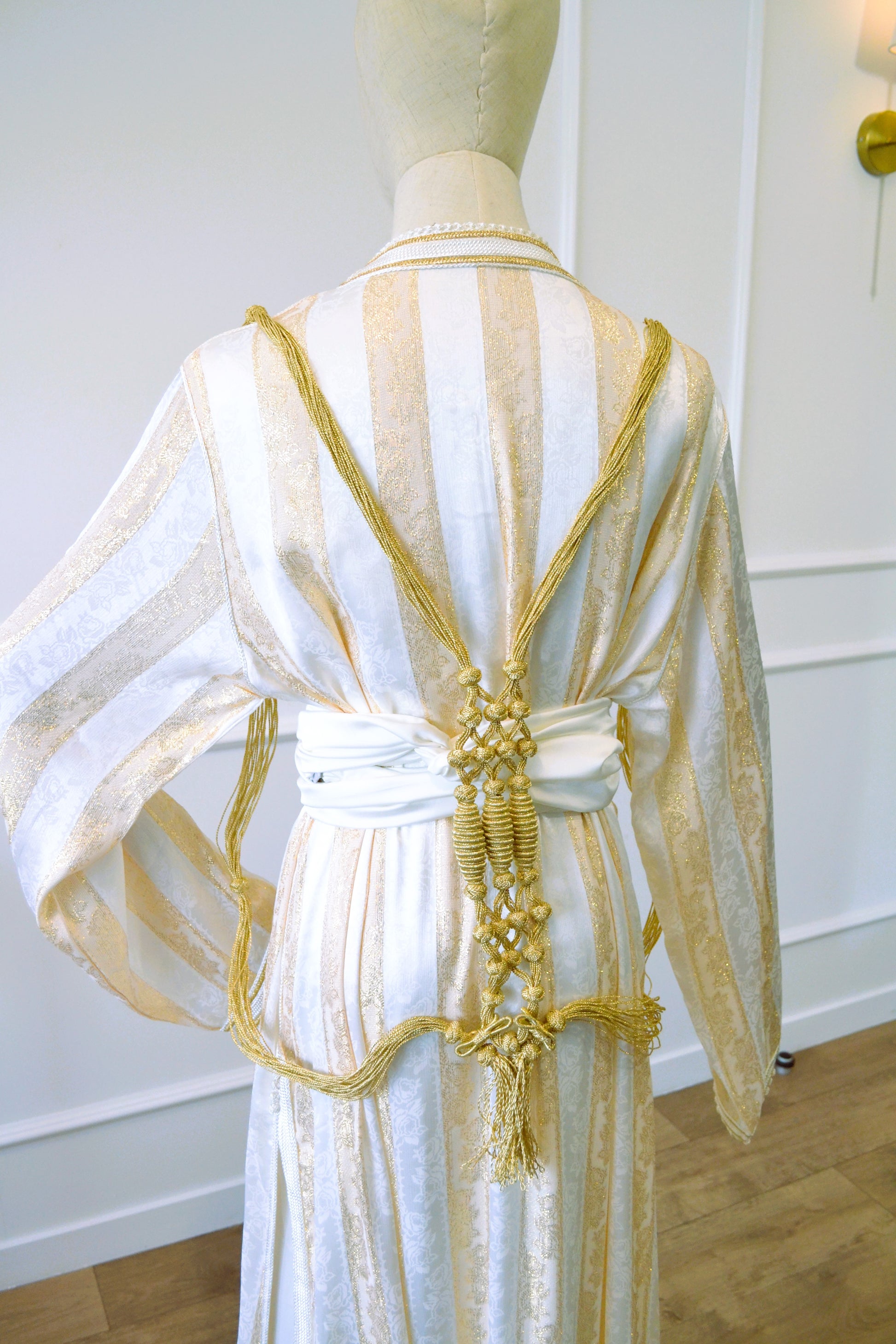 Sublimez votre tenue avec le Chmar en soie dorée, un bijou de dos raffiné et délicat confectionné par des artisans marocains. Sa texture en soie légère offre une sensation de confort exceptionnel, tandis que sa finition dorée apporte une touche d’élégance sophistiquée. Conçu pour rehausser subtilement votre dos, il souligne votre féminité avec discrétion et style, parfait pour les occasions où chaque détail compte.